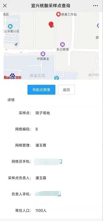 3.第三步,点击您要去的核酸采样点,即可看到采样点联系方式和位置信息
