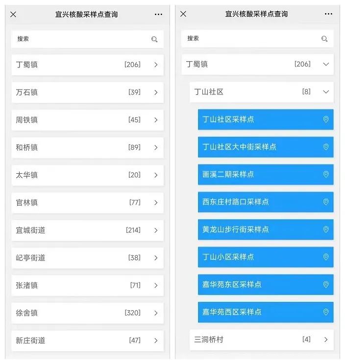 2.第二步,选择您所在区域位置或者在上方搜索您要前往的镇街采样点
