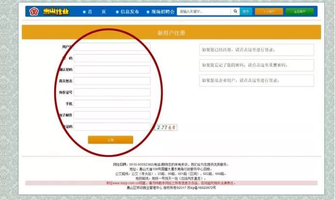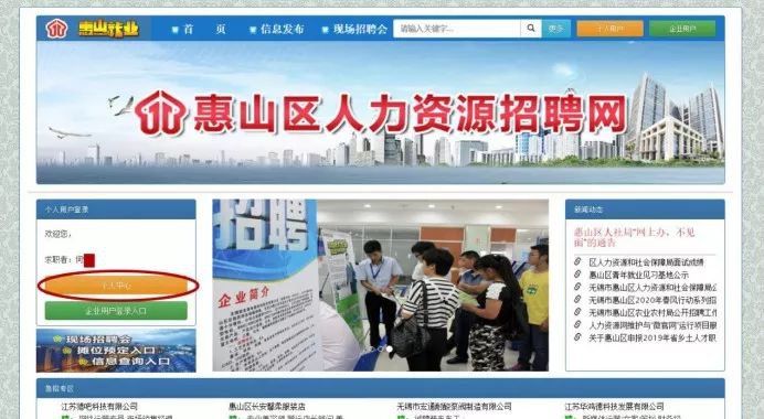 1、登陆惠山区人力资源招聘网(网址:http://hszp.org.cn/),进行注册。