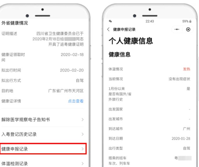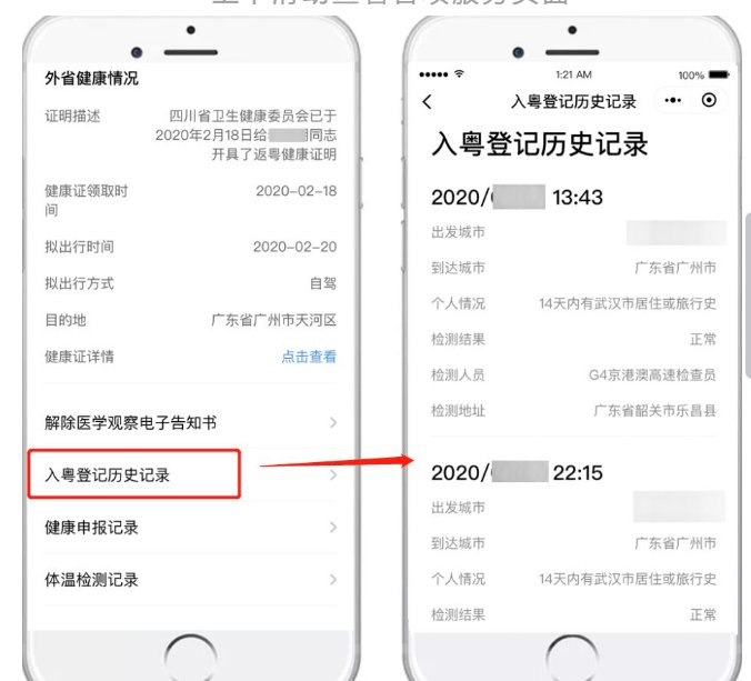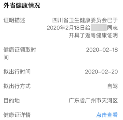 · 查看外省健康情况,川籍入粤复工的群众可以查看四川省相关部门开具的返粤健康证明。