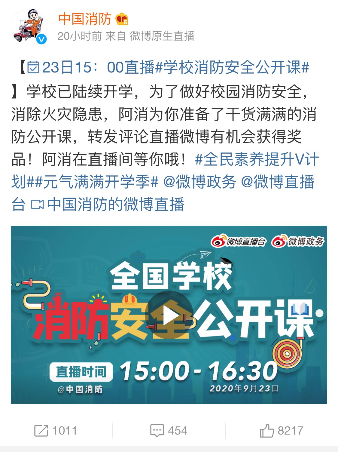 2020学校消防安全公开课直播 消防安全直播课堂2020