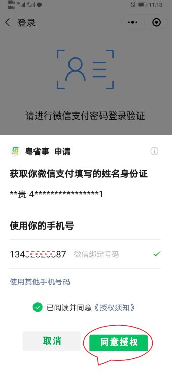 4、在同意《用户服务协议》□内点击选择打“√” ,并点击选择“开始登录”。点击选择“开始登录”后,捆绑手机用户手机号码,并点击选择“同意授权” 进入下一办理界面。