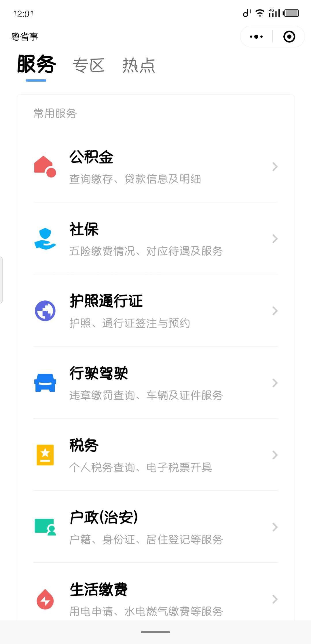 1、用手机扫描“粤省事”微信小程序二维码添加安装“粤省事”微信小程序,然后点击打开小程序。