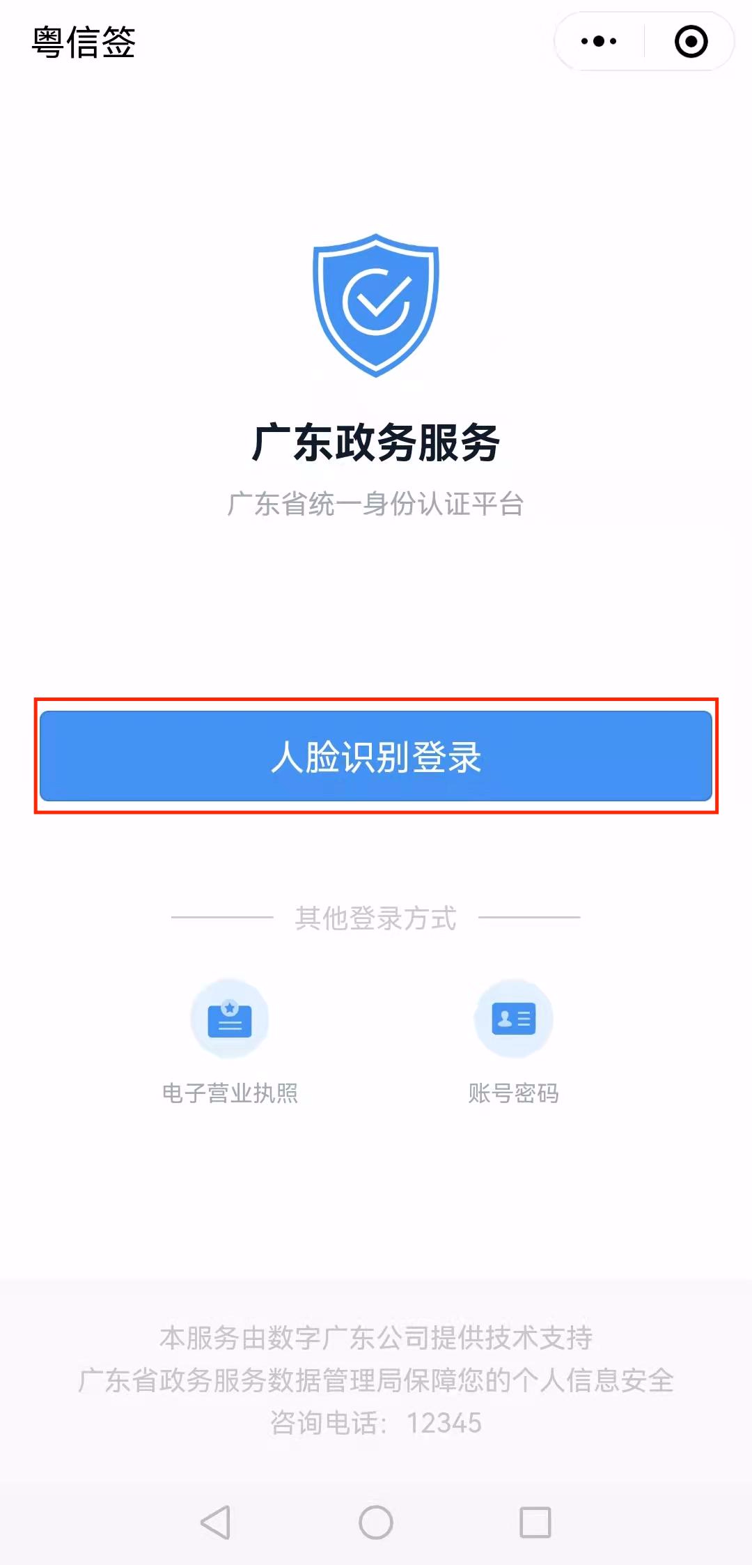 4、进行粤信签——广东政务服务平台,选择【人面识别登录】