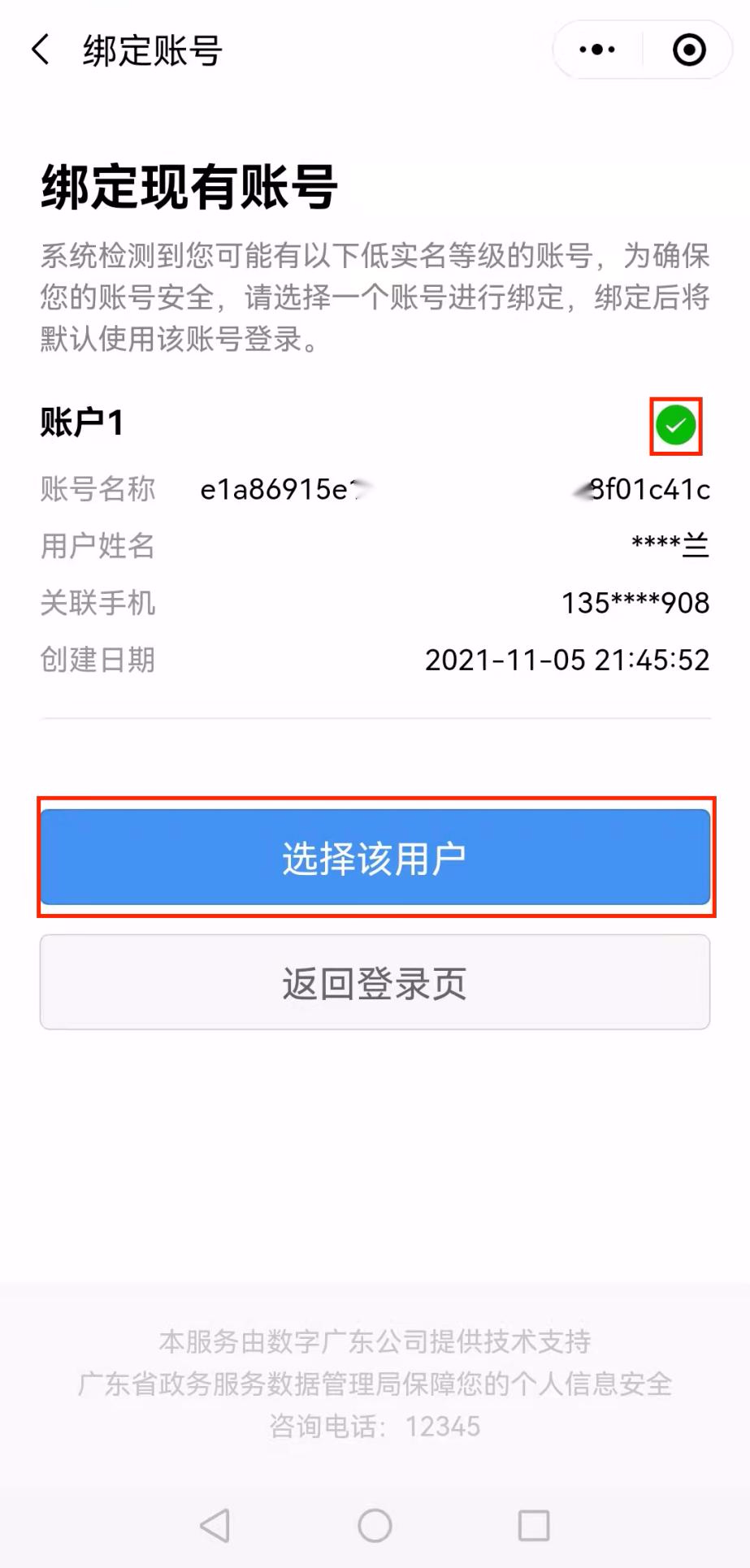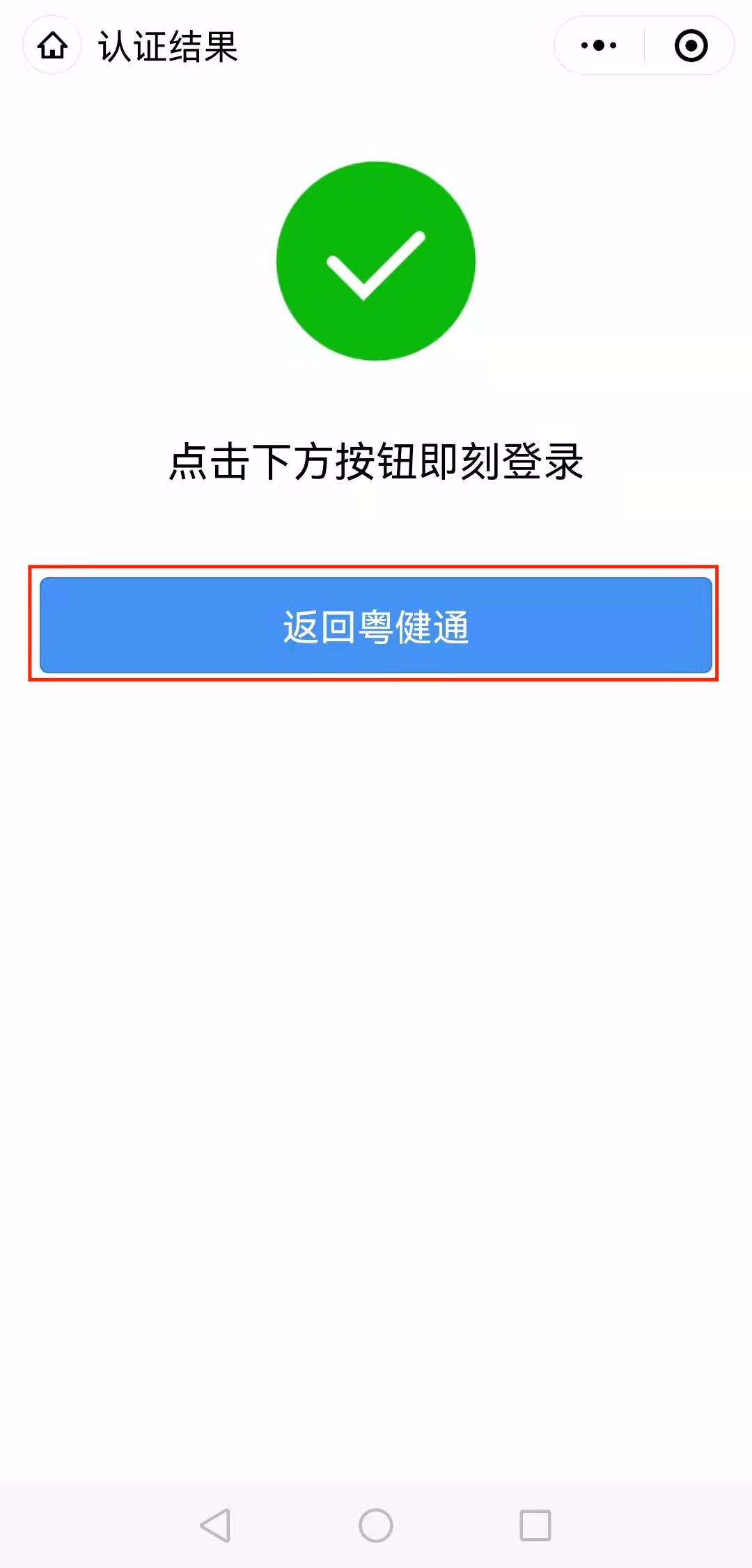 11、认证完毕,【返回粤健通】