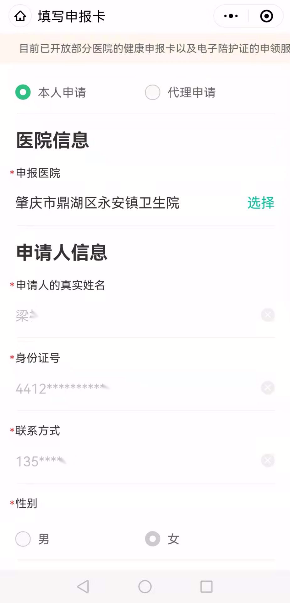 12、进入健康申报卡填写环节,默认【本人申请】