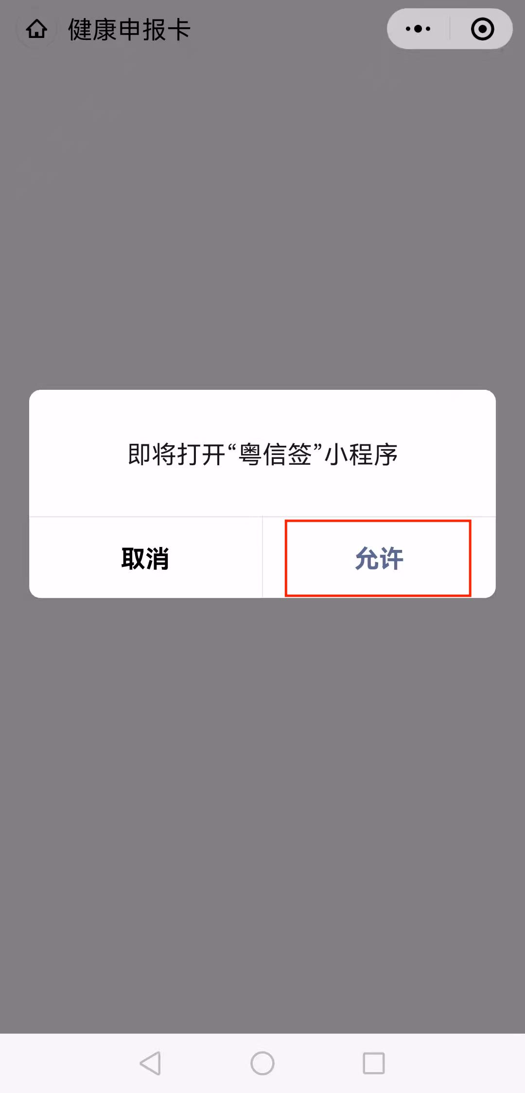 3、提示打开“粤信签”小程序,【允许】