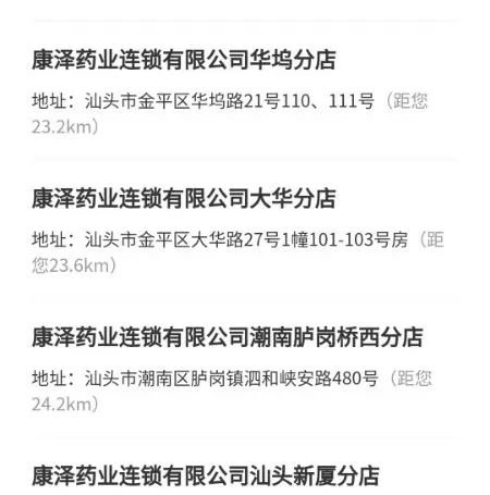 汕头康泽线下药店地址(汕头康泽药业各分店地址)