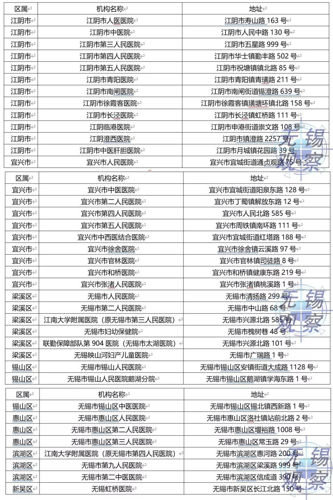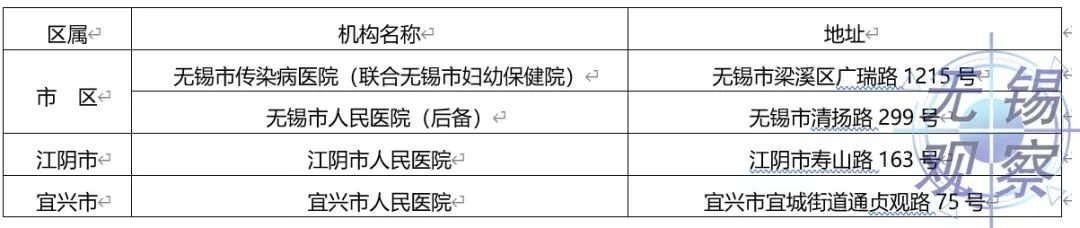 2. 实行定点收治:市区定点收治无锡市传染病医院(联合无锡市妇幼保健院)和无锡市人民医院(后备),江阴市定点江阴市人民医院、宜兴市定点宜兴市人民医院(见下图)。