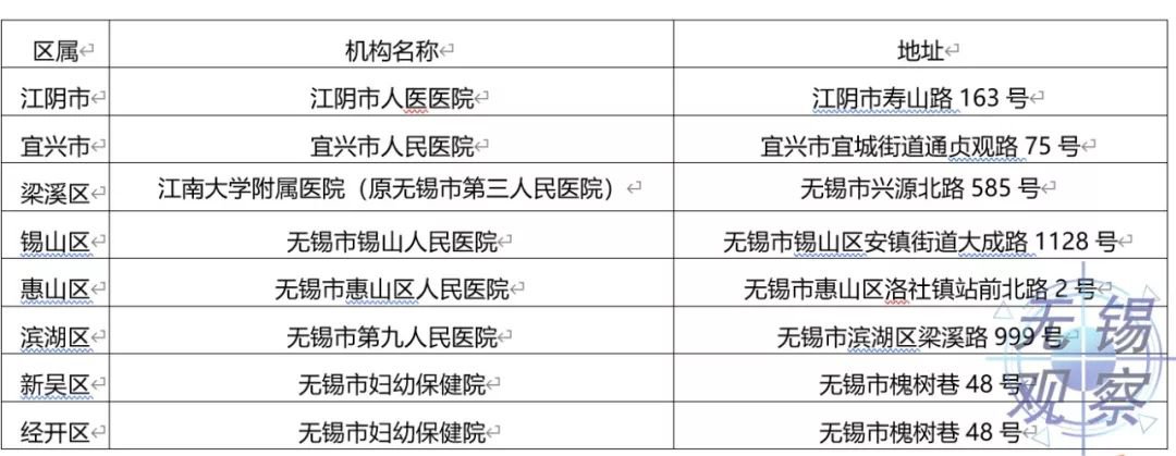 无锡市隔离孕产妇接诊定点医院