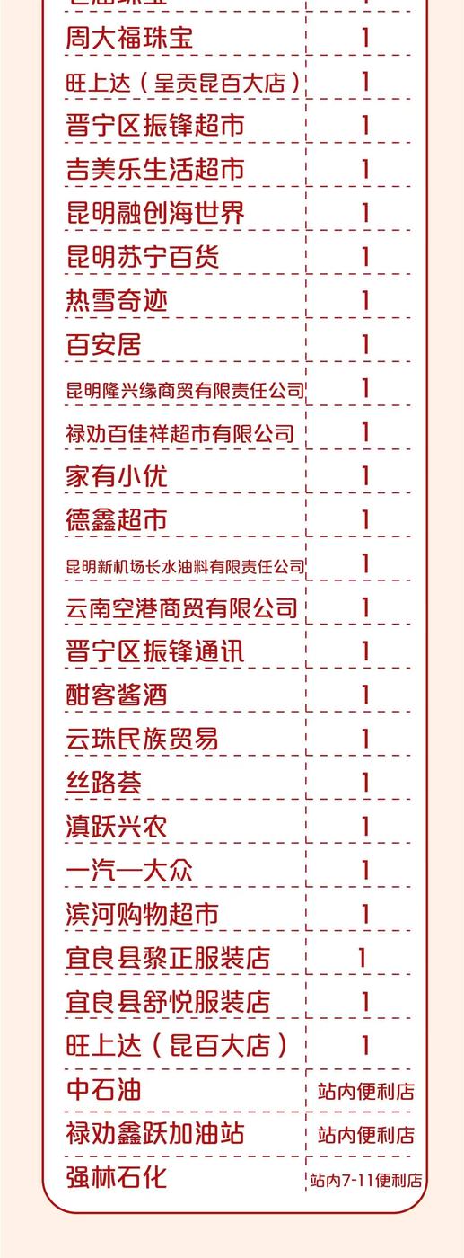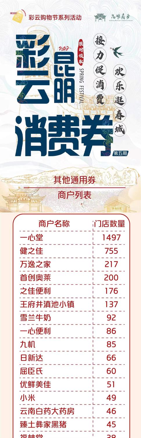 2022年昆明彩云消费券第五期其他通用券使用地点