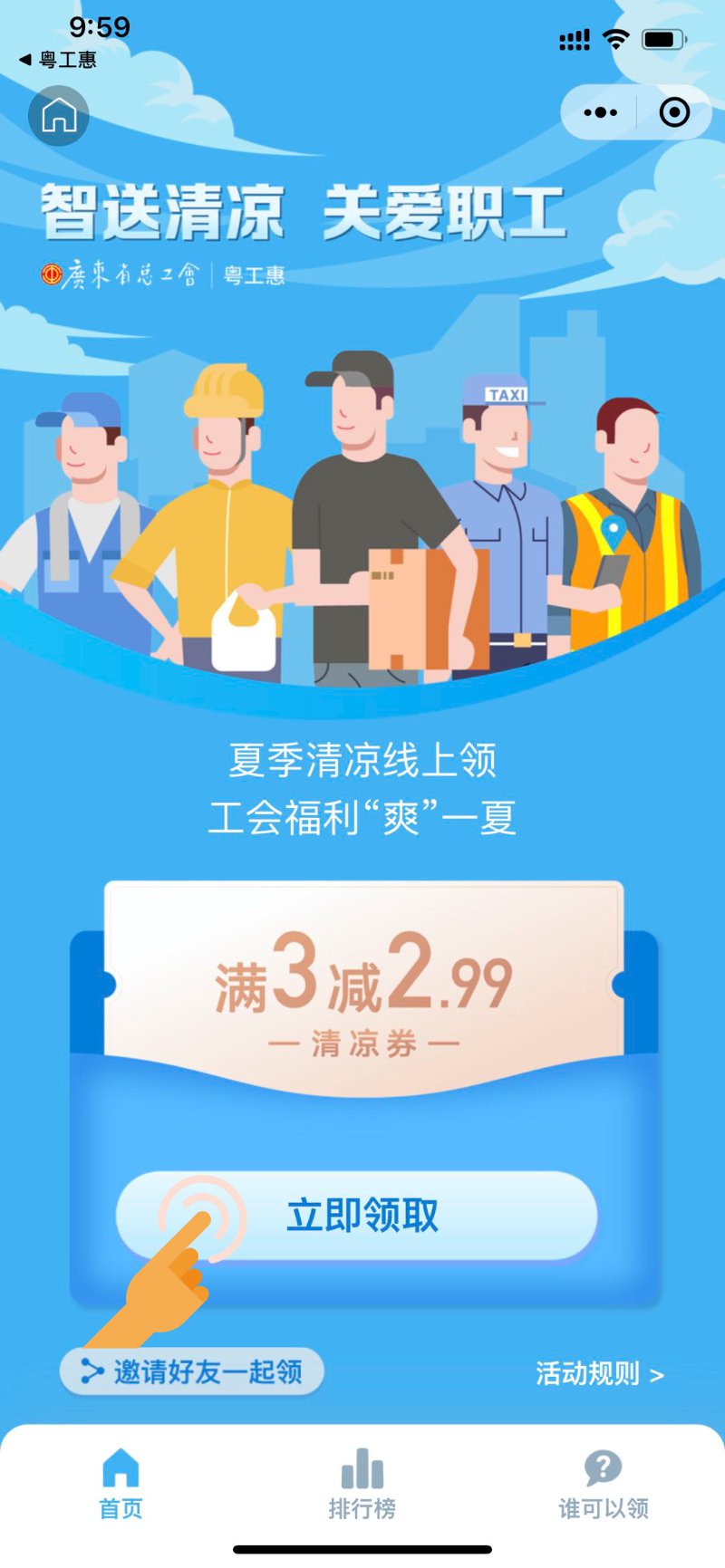 广东省总工会清凉券APP领取指南 省总工会送清凉