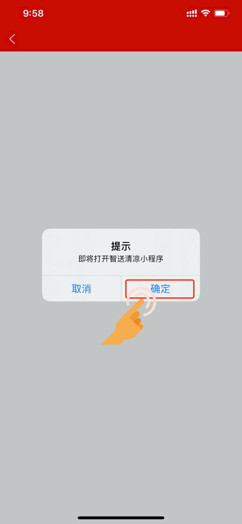 2、在提示框点击“确定”,手机页面跳转到“智送清凉”活动小程序主页;