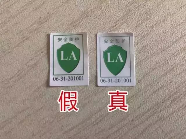 看LA标志和QS认证,不是印刷在盒子上的,那个没有用,是两个小标签。