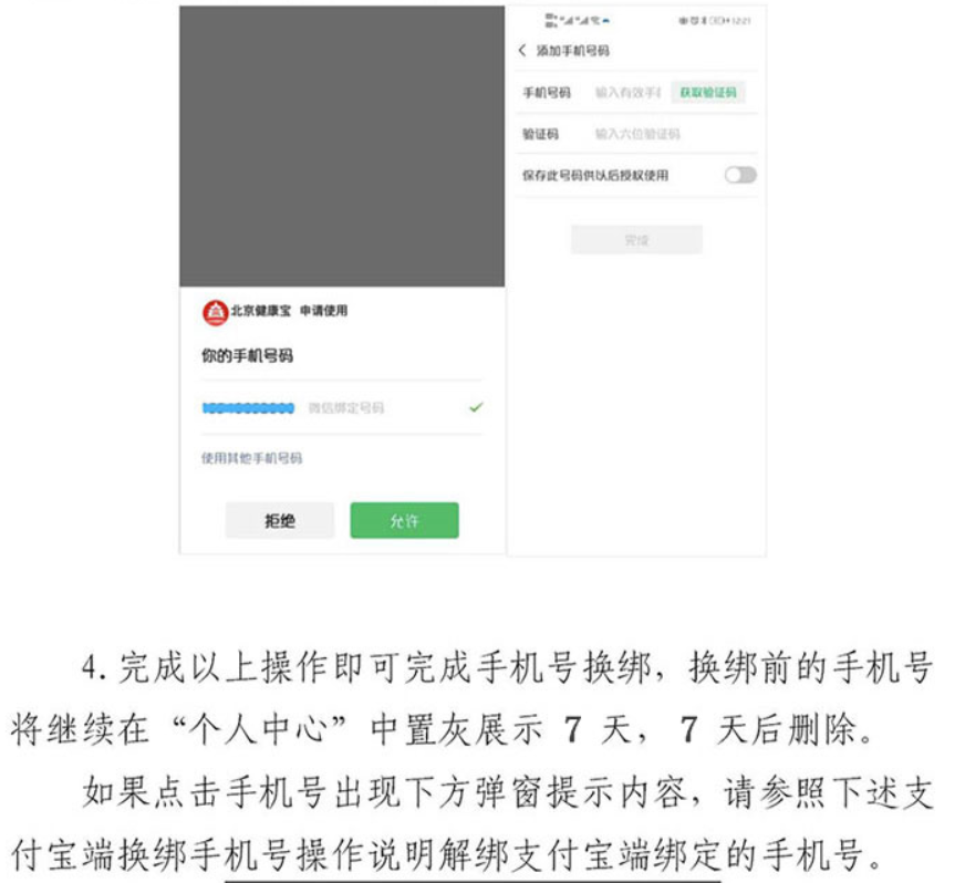为了不影响您正常使用北京“健康宝”,请务必提前7天以上换绑手机号码!