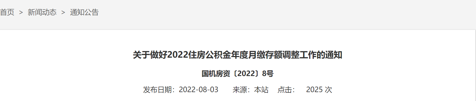 按照北京住房公积金管理委员会《关于2022住房公积金年度住房公积金缴存有关问题的通知》(京房公积金管委会办〔2022〕7号),为做好中央国家机关2022住房公积金年度月缴存额调整工作,现就有关事项通知如下: