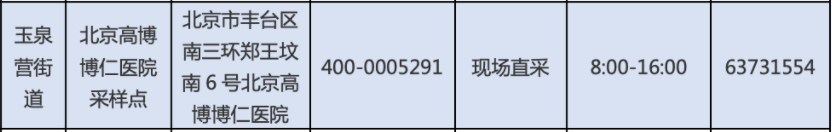 ➤北京丰台玉泉营街道常态化核酸检测点【因各采样点会有动态调整变化,具体实际情况为准】