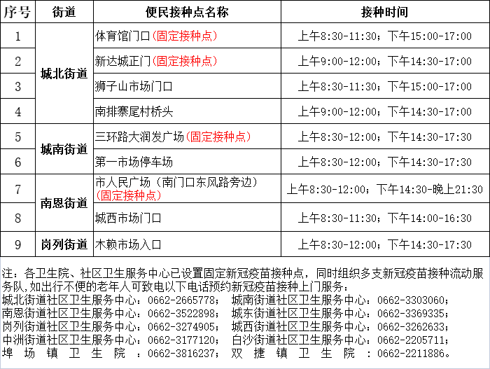 江城区4月19日新冠疫苗便民接种服务点安排如下: