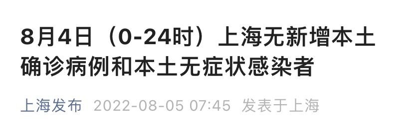 上海市卫健委8月5日通报:2022年8月4日0—24时,上海无新增本土确诊病例和本土无症状感染者。8月5日零时起,上海3个中风险区解除管控,调整后,上海还剩1个中风险区,也就是杨浦区长海路街道翔殷路9号地块(含)以东、翔殷路以南、虬江码头路(26号至南翔殷路)以西、南翔殷路以北区域。