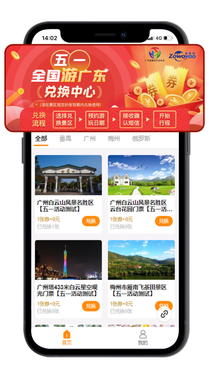❹使用方法:需预约指定景区指定时间入园,超时自动作废。凭短信预约码到广东省景区行业协会官方公众号“智游广东”选择心仪景区预约入园。