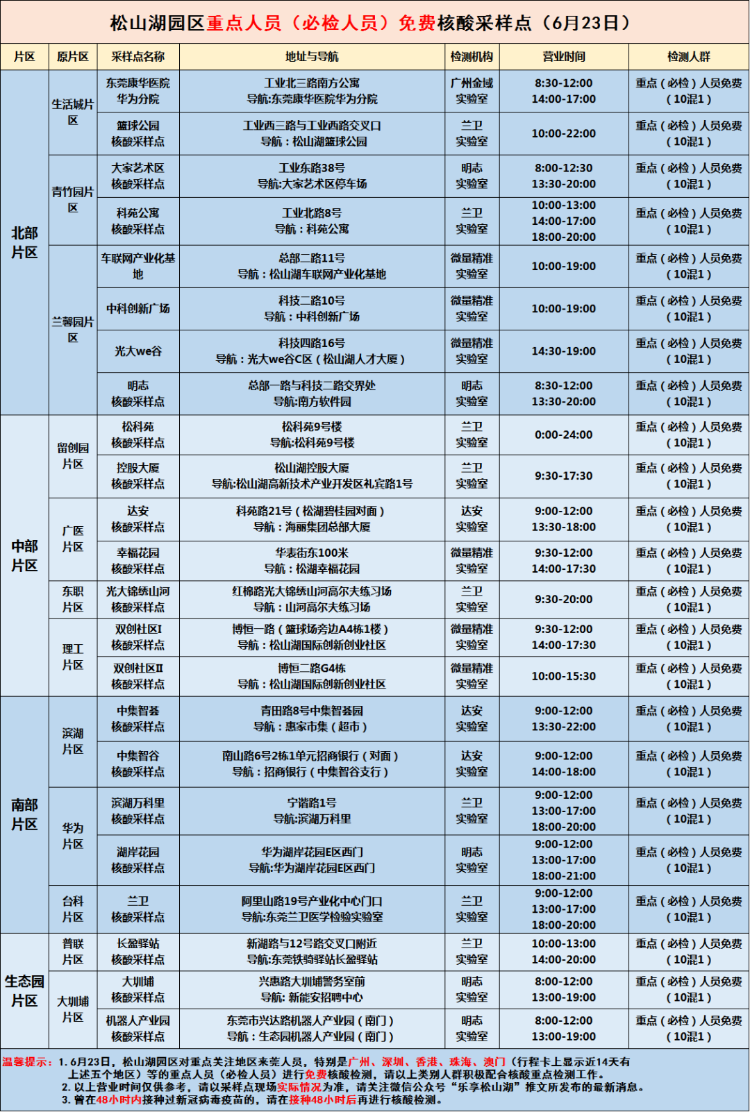 鉴于省内疫情多点散发,根据市指挥办统一部署,6月23-24日,在全园区实行分时、分区域开展新冠病毒免费核酸检测。请群众积极配合严格落实相应健康管理和核酸检测工作,主动检测。现将有关安排通告如下: