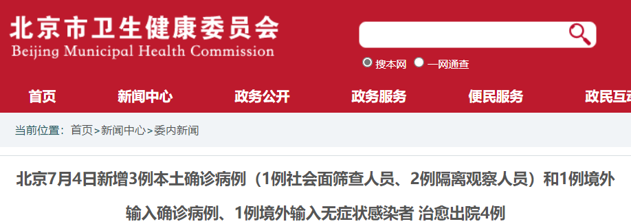7月4日0时至24时,新增3例本土确诊病例(1例社会面筛查人员、2例隔离观察人员),无新增疑似病例和无症状感染者;新增1例境外输入确诊病例和1例无症状感染者,无新增疑似病例。治愈出院4例,解除医学观察的无症状感染者1例。