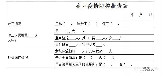 企业要组织对每一名人员的籍贯和返工前14天内的去向进行排查。对来自或者去过疫情重点地区的人员建立重点监控类清单,并规劝其留在当地暂不返茂;并对于来自或者去过疫情重点地区的返回员工要排查其抵茂时间及抵茂方式,按规定完善落实企业内部医学观察、自行隔离等措施,确保其观察14天并经体温测量正常后方可上岗