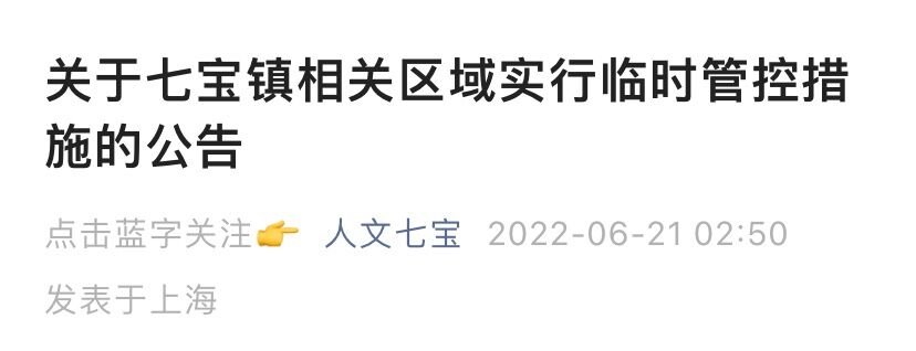 根据国家和本市疫情防控有关规定,以及区疫情防控工作领导小组办公室下发的封控任务单要求,七宝镇航华合围区后续管控措施如下: