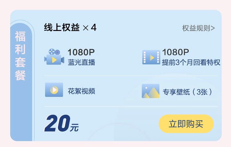 福利套餐购买用户享提前3个月观看特权。