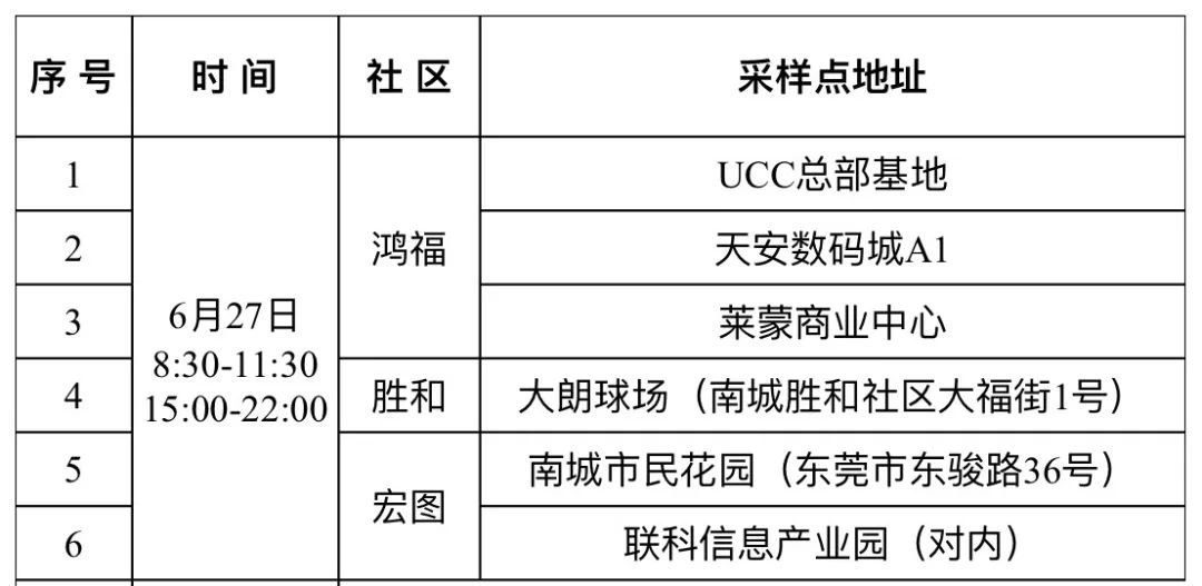 3. 补检期间南城街道便民核酸采样点正常开放,免费检测。