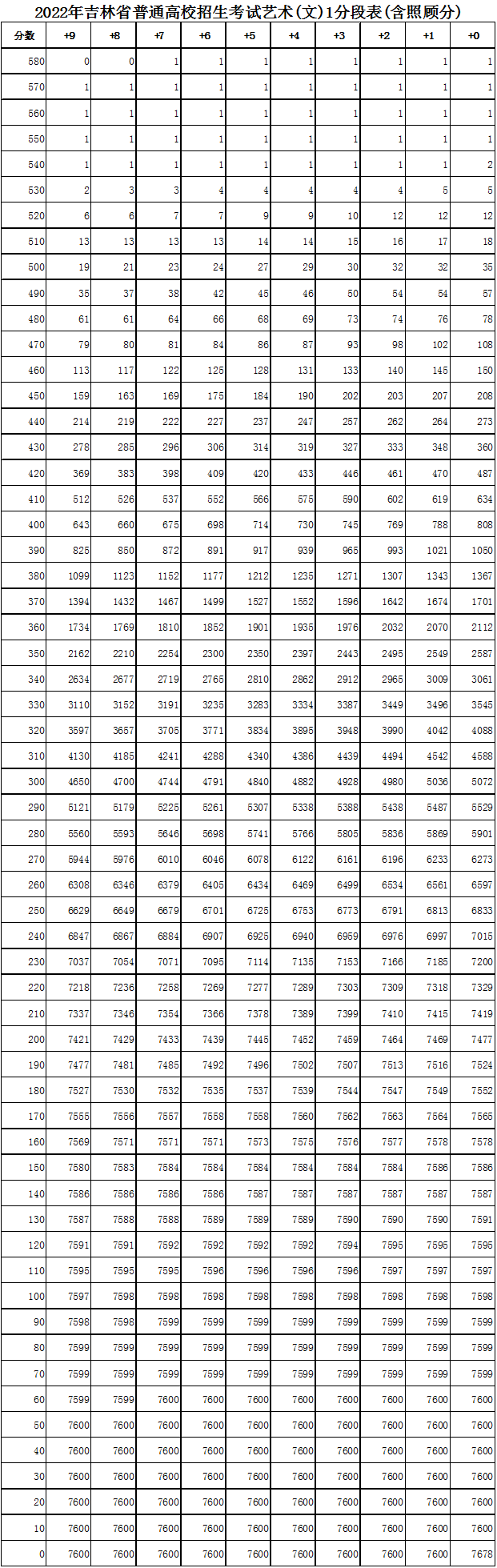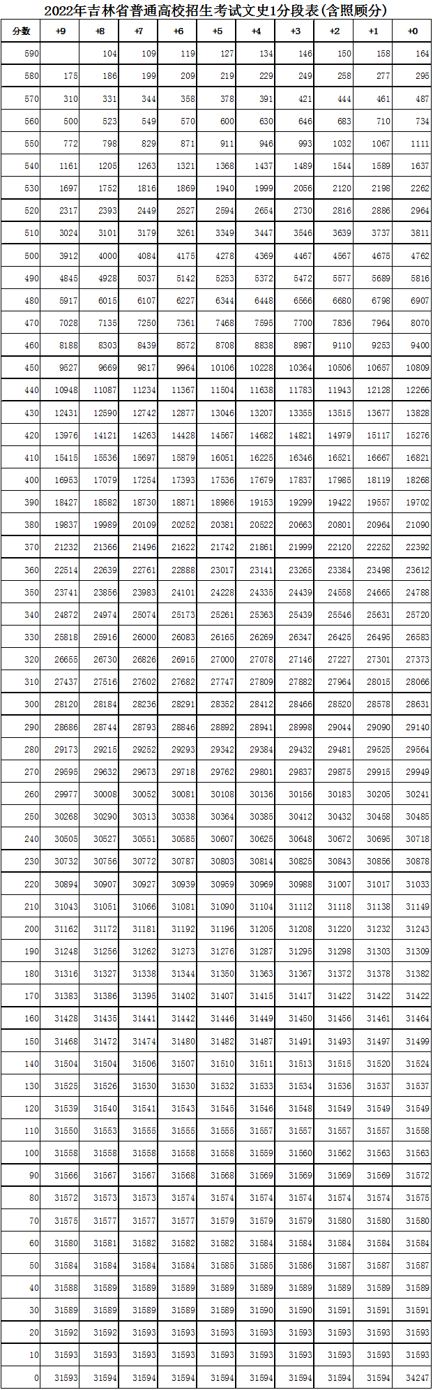 2022吉林省高考一分一段表 2020吉林省高考一分一段表理科2021