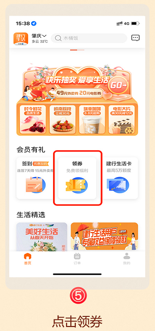 (1)在各大应用市场下载建行生活APP,打开GPS定位肇庆,并注册登录建行生活。