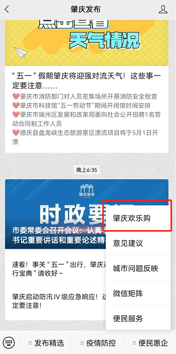 如,消费者可通过“肇庆发布”微信公众号菜单栏【便民惠企】-【肇庆欢乐购】进入领券页面。