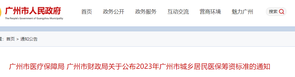 广州市医疗保障局 广州市财政局关于公布2023年广州市城乡居民医保筹资标准的通知