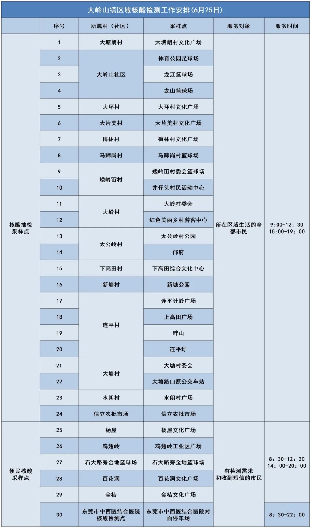 6月25日,免费开展区域核酸检测采样时间及核酸检测采样点: