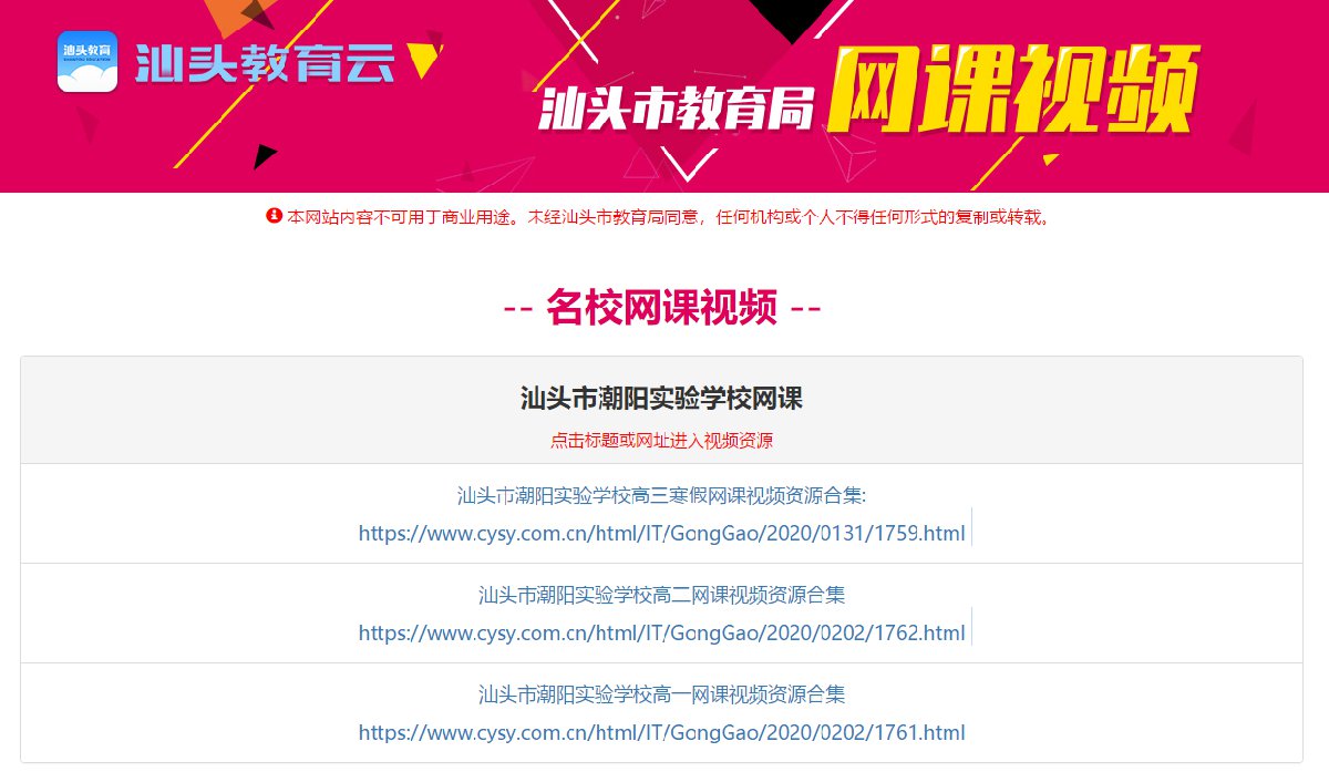 汕头市潮阳实验学校高三寒假网课视频资源合集: