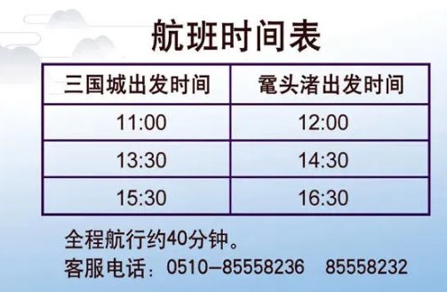 无锡影视基地&鼋头渚风景区联合推出“太湖赏花航线”,将于3月21日起航,具体航班时间表如下: