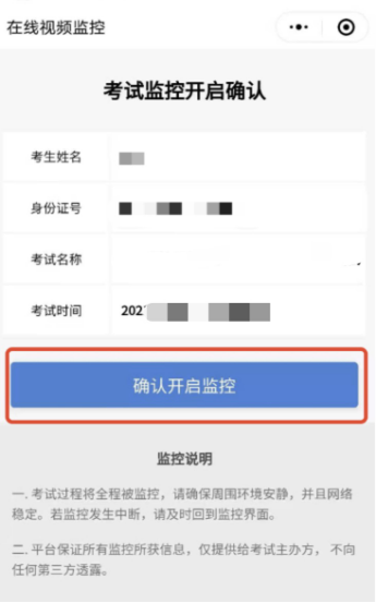 扫码后手机上出现如下画面后,点击“确认开启监控”,等待电脑端出现“监控已开启,下一步”的提示,点击进入。