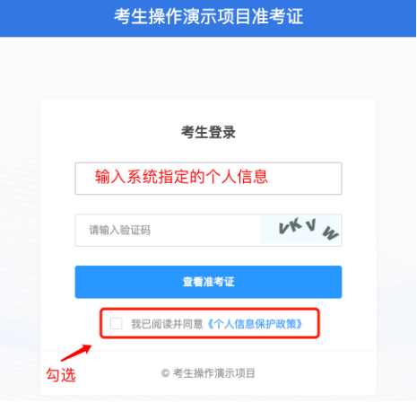 (一)准考证查看:按要求输入个人信息和验证码后,勾选相关协议,点击【查看准考证】。