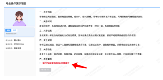 5.正式进入考试:请仔细阅读考试须知并接受后进入考试。