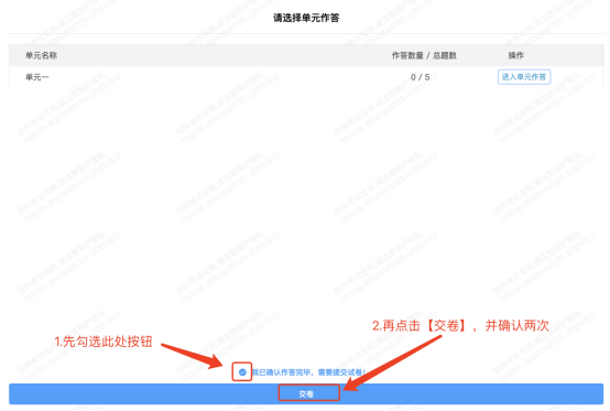 7.作答完毕,主动交卷。作答完毕后交卷先点击“返回单元列表”回到主界面。