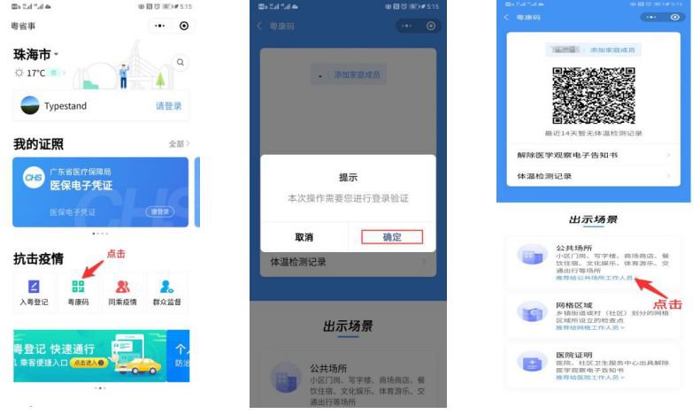 步骤一:点击“粤康码”按提示实名绑定登录