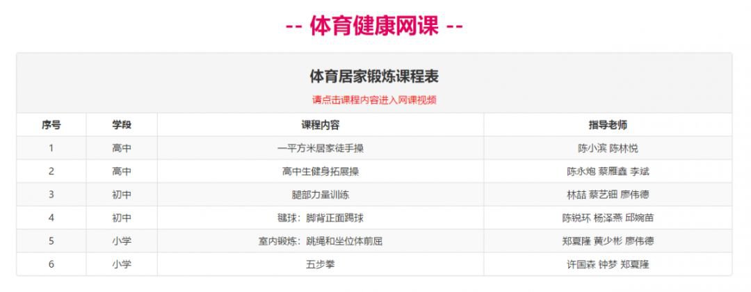 进入心理和体育健康专栏:按小学、初中、高中、中职每个学段各二个课程:疫情背景下学生心理调适和居家体育锻炼方法。