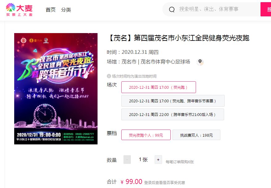问:2020第四届茂名市小东江全民健身荧光夜跑去哪里买票?