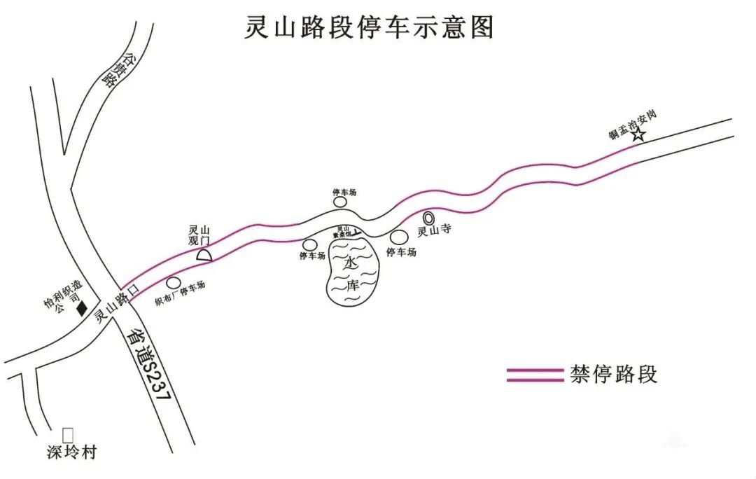 (四)省道237线灵山路口两侧车辆请顺向靠右停放,不得影响车辆正常通行。