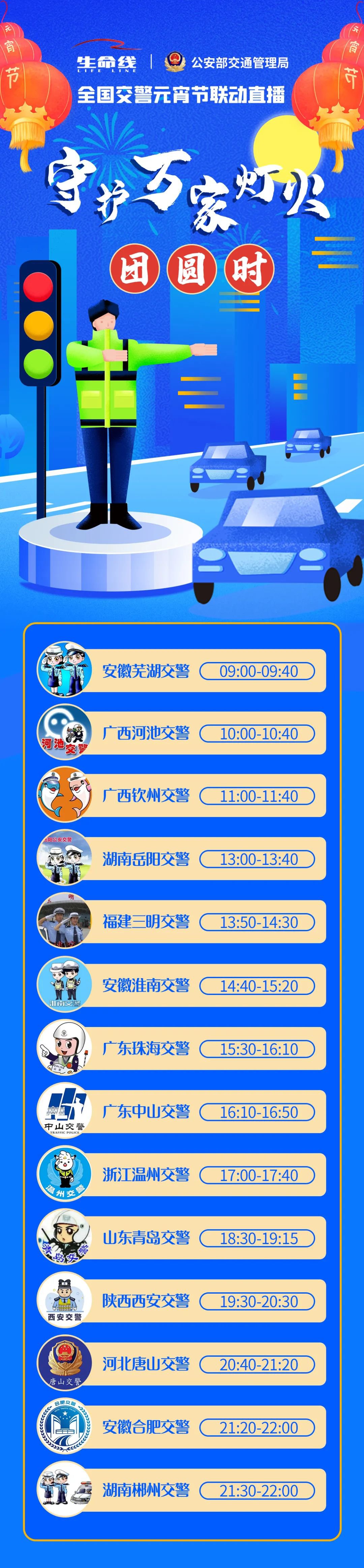 2021全国交警守护万家灯火团圆时元宵节执法联动直播时间