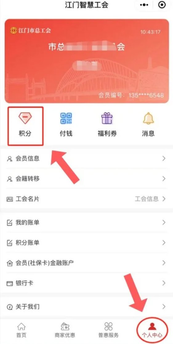 系统将优先抵扣积分金额,积分不足以抵扣部分从绑定的银行卡扣取,工会积分不能兑换烟酒或高档商品。( 目前积分支持在大昌超市、永利超市、昌大昌超市、国大药房门店使用)