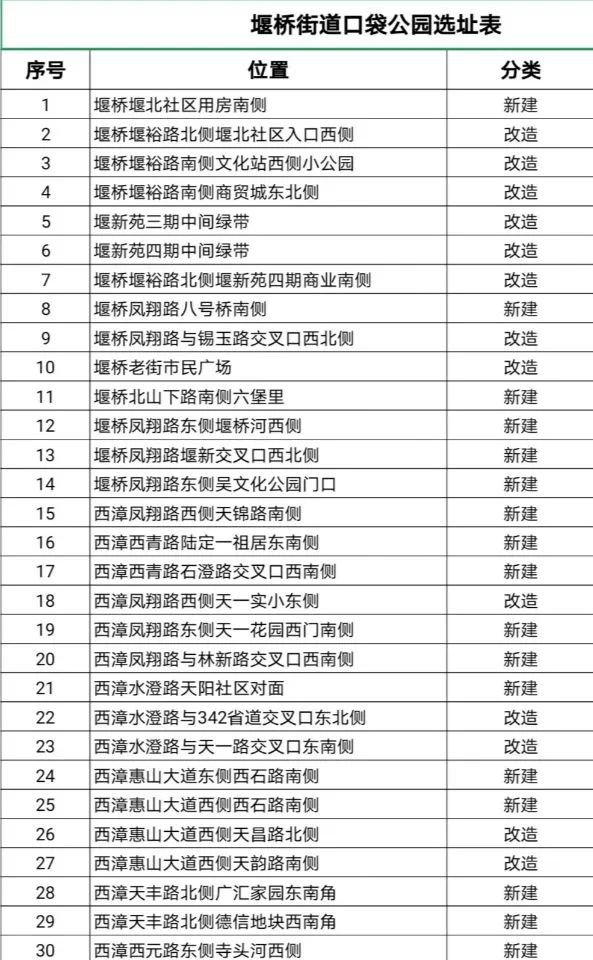 堰桥街道今年已规划30个口袋公园,涵盖凤翔路快速化改造工程重要节点,年内开工建设13个,两年内全部建成
