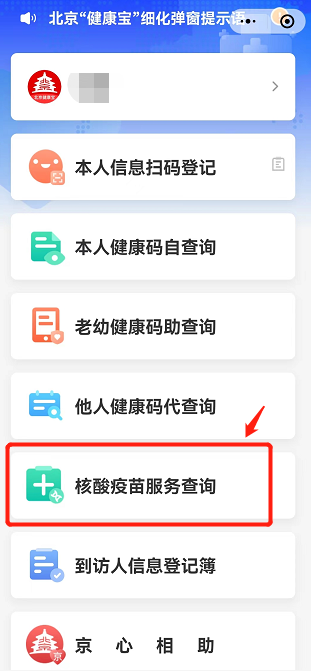 1、进入北京健康宝平台,选择“核酸疫苗服务查询”
