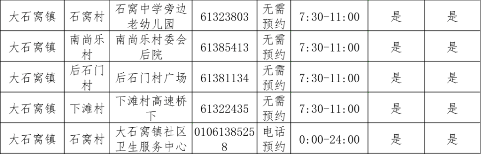 ➤北京房山大石窝镇常态化核酸检测点【因各采样点会有动态调整变化,具体实际情况为准】